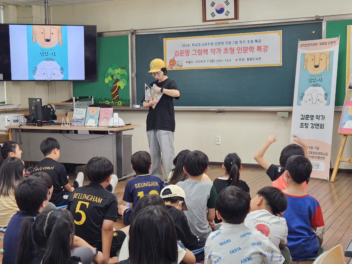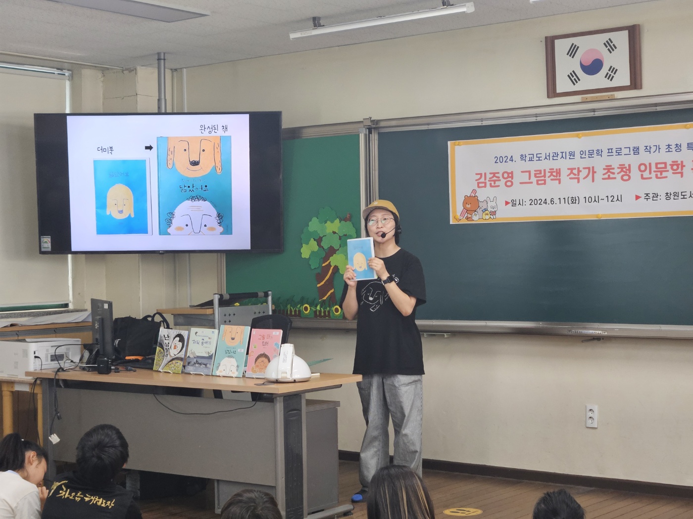 2024. 학교도서관 지원프로그램으로 '난 남달라' 의 김준영 작가님을 모시고 인문학 특강을 진행하였습니다.